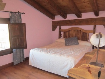 Habitacion con cama de matrimonio con posibilidad de incorporar camas supletorias o cunas. Precio 40 Euros/noche con desayuno incluido. Ubicada en la segunda planta con un amplio hall, bajo un techo de madera con interesante decoración que distribuye las habitaciones. La decoración acorde con el estilo que el resto del establecimiento.