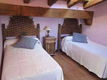Disponemos de 6 acogedoras habitaciones en estilo rústico, todas ellas en madera, con baño privado. Se alquila por habitaciones. Habitaciones dobles con posibilidad de incorporar camas supletorias o cunas. Precio 40 Euros/noche con desayuno incluido. En la segunda planta un amplio hall, bajo un techo de madera con interesante decoración. Distribuye las habitaciones. Todas ellas son dobles, con baño y televisor, de diferente tamaño, algunas con cama de matrimonio. La decoración en cada una es diferente pero siguiendo el mismo estilo que el resto del establecimiento. Tienen diferentes nombres: Las parras, Las llavecillas, La berzosa, Los riojales, los riojales, los riojales.